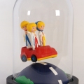 Eléments : Figurine de notre dame de lourdes / moulage de jouets Vulli / résine / plâtre / peinture acrylique / tige acier / globe verre et plateau bois.